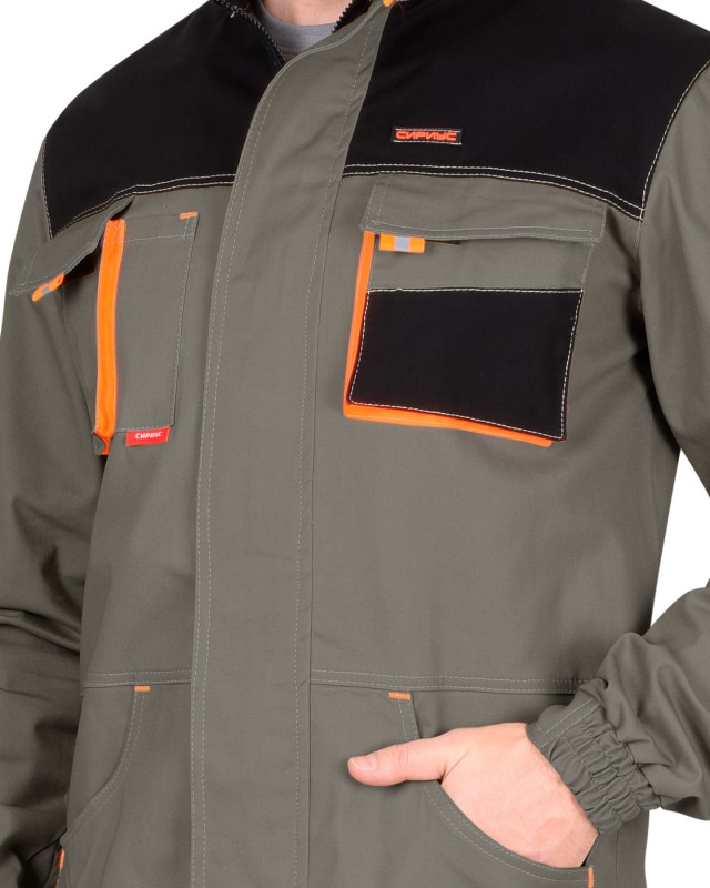 AMADEUS » Летняя спецодежда- 03.25(1) » Комбинезоны, полукомбинезоны,брюки. куртки- 02.25(1) » Для общих работ-20.02.25(1 ) » Куртка СИРИУС-МАНХЕТТЕН оливковый с оранжевым и чер. тк. мех. стрейч пл 260 г/кв.м Арт. 112450. К 118,