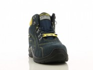 Описание модели: Кожаные (нубук) ботинки темно – голубого цвета с желтыми элементами, антистатические свойства, нескользящая подошва, подкладка из нейлоновой сетки, стальной подносок, антипрокольная металлическая стелька, шнуровка, для типа ног со стандартным и высоким подъемом, S1P, ПУ/ПУ.