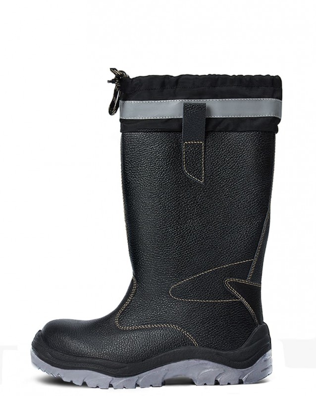 Верх обуви выполнен из натуральной кожи толщиной 1,8–2,0 мм, специально адаптированной для условий рабочей среды.