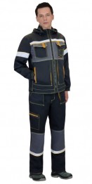 Куртка прямого силуэта, укороченная, с удлиненной линией низа на спинке, с центральной застёжкой на молнию и внутренней короткой планкой по правому борту, с воротником стойка, со съёмным капюшоном, с верхними и нижними карманами. Рукава втачные с манжетами, стянутыми резинкой. Ширина куртки понизу регулируется хлястиком с липучкой. В куртке предусмотрена лента светоотражающая для обозначения сигнальной видимости.