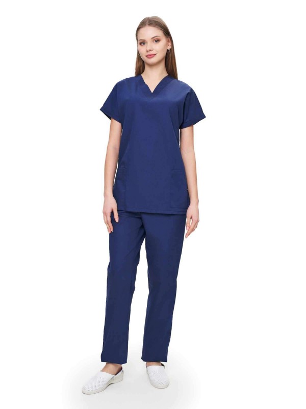Современный, легкий и удобный женский костюм со свободной посадкой в спортивном стиле, рекомендован для сферы косметологии и работников медицинских учреждений из высококачественной смесовой ткани прекрасно переносят многократные стирки и выглядят презентабельно даже при длительных сроках эксплуатации. Широкий размерный ряд продукции позволит без труда подобрать костюм правильно по фигуре, в соответствии со спецификой профессии и с учетом индивидуальных требований сотрудника. Костюм женский «Эрла» для косметологов и медработников прост в уходе, не мнется и быстро сохнет, а материал долгое время сохранит свой первоначальный яркий цвет. Костюм состоит из куртки и брюк-джоггеров на резинке приятного темно-синего цвета. Сегодня современная мода вмешивается не только в подиумные и уличные образы. Она диктует свои правила разным сферам жизни, в том числе в сфере косметологии и медицине. Костюм состоит из прочной смесовой ткани ТИСИ, отталкивающей различного рода загрязнения. Материал устойчив к пятнам и истиранию, тем самым косметологи и медработники всегда будут выглядеть опрятно и привлекательно.
