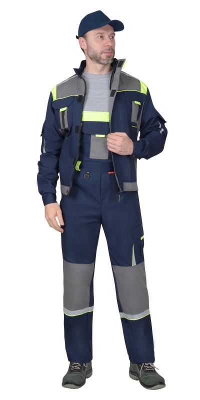Костюм СИРИУС-СТАН: летний куртка + п/к синий со средне-серым и лимонной отделкой КП 86/1