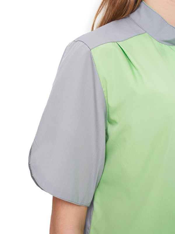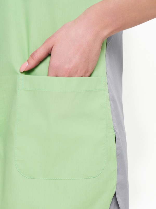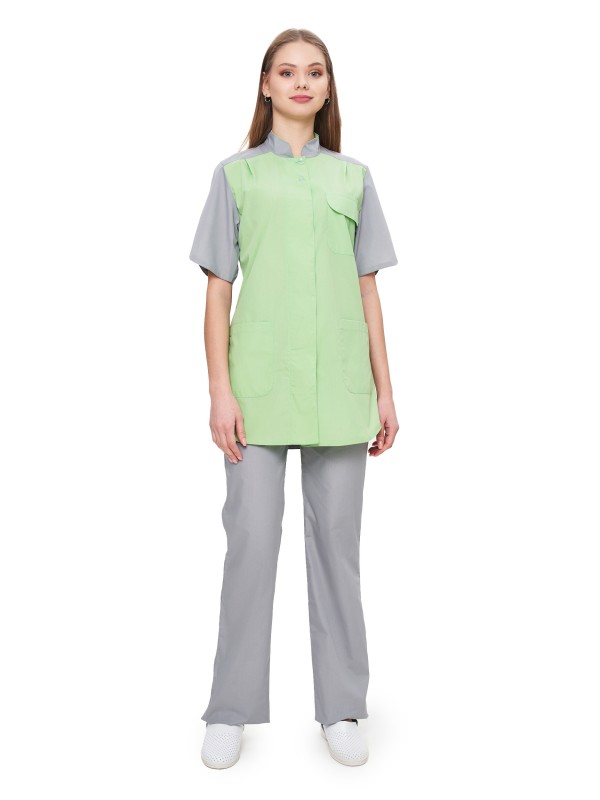 Современный удобный женский костюм со свободной посадкой, рекомендован для сферы обслуживания, клининга, гостиничного бизнеса (HORECA) из высококачественной смесовой ткани убережет от загрязнений и послужит отличным помощником в решении задач любой сложности. Костюм для горничных и уборщиц прост в уходе, не мнется и быстро сохнет, а материал долгое время сохранит свой первоначальный яркий цвет. Костюм состоит из блузы серого с полочкой салатового цвета и брюк серого цвета. Спецодежда для горничных является особенным видом профессиональной униформы. Она создана для сферы обслуживания, работники которой всегда должны выглядеть безупречно. Одежда для горничных строго регламентируется администрацией гостиницы или отеля, поэтому ее состоянию уделяется большое внимание. Костюм состоит из прочной смесовой ткани ТИСИ, отталкивающей различного рода загрязнения. Материал устойчив к пятнам и истиранию, тем самым уборщицы всегда будут выглядеть опрятно и привлекательно.