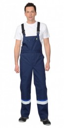Полукомбинезон с застёжкой гульфика и застёжкой в правом боковом шве на пуговицы, верхним накладным карманом и нижними внутренними боковыми карманами, с наколенниками, с накладным карманом на левом боковом шве с клапаном на липучке, с патой, с двумя задними и карманами для инструментов, по спинке вставлена резинка. ГОСТ 27575-87.