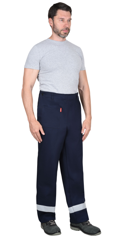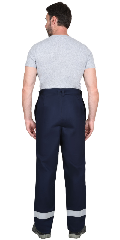 Брюки с застежкой в боковых швах на огнестойкие пуговицы. Передние половинки с внутренними карманами в боковых швах и накладным карманом на правой передней половинке.