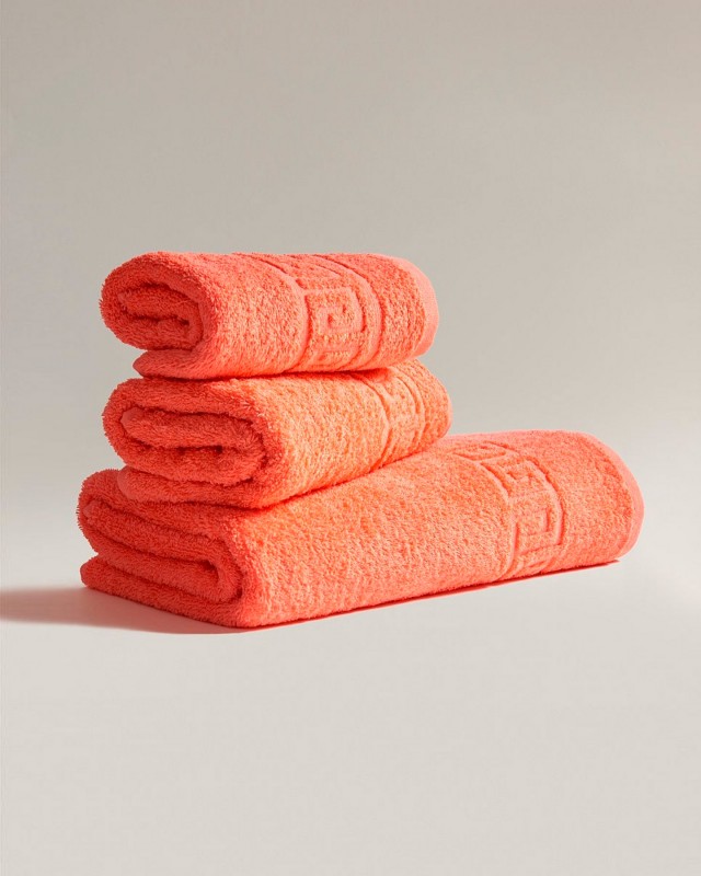 Махровое полотенце, цвет коралл, из чистого хлопка плотность 430 гр/м2 производство Туркмения. Отлично впитывает влагу, имеет пышный ворс и высокую плотность. Хорошо переносит стирку и сушку. Используется в домашних условиях, гостиницах, хостелах, детских садах и в больницах