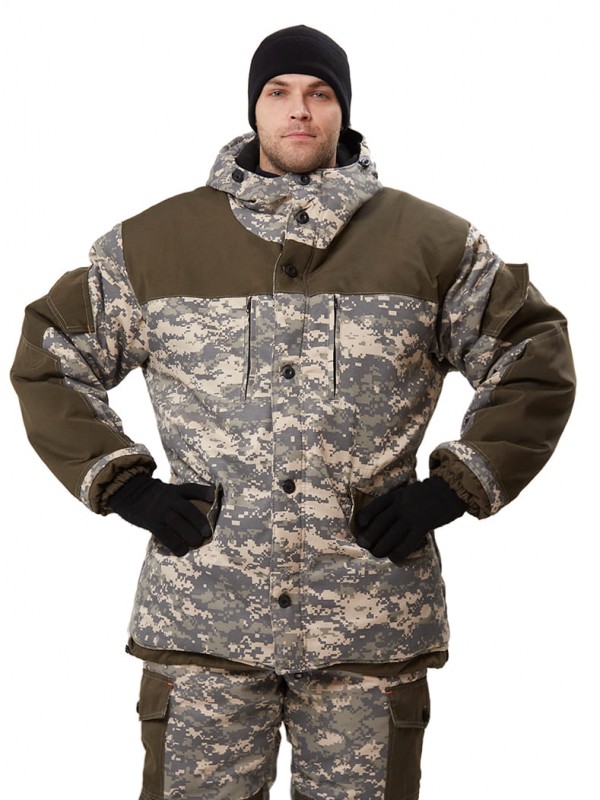 Костюм зимний "ГОРКА" куртка/брюки, цвет: кмф "цифра св.серый"/хаки, ткань: Рип-Стоп КОС288-ЗМ-СВ.СЕРЫЙ ЦИФРА(У). КЗК 5,