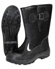 Кожаные сапоги предназначены для защиты ног от общих производственных загрязнений в отапливаемых помещениях и на открытом воздухе в летний период. Модель дополнена ремнем с металлической пряжкой для возможности регулировать и комфортно фиксировать ширину бесподкладочного голенища. Нижняя часть внутри сапога и вкладная стелька выполнена из текстиля. Светоотражающие элементы повышают видимость работников в темное время суток и на неосвещенной территории. Однослойная маслобензостойкая полиуретановая подошва литьевого метода крепления имеет вставку в пяточной части подошвы, обладающую амортизационными свойствами и способную гасить ударные нагрузки при ходьбе. Глубина протектора ходового слоя обеспечивает хорошую сцепляемость с поверхностями и препятствует скольжению за счет рельефа протектора. Термопластичный подносок обеспечивает защиту пальцев стопы.
