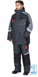 Костюм СИРИУС-ФАВОРИТ-МЕГА-М зимний, куртка дл., п/к, тёмно-серый с черным, средне-серой отд. и СОП (Арт. 154044) КПСУ 21