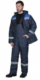Костюм зимний состоит из куртки и полукомбинезона, костюм со световозвращающей лентой 50 мм для обеспечения сигнальной видимости.