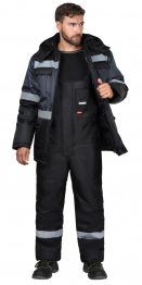 Костюм СИРИУС-ТЕРМИНАЛ зимний, куртка, п/к, черный с темно-серым и СОП (Арт. 161126) КПСУ 17