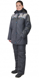 Костюм СИРИУС-ФАВОРИТ женский зимний, куртка, брюки т.серый со св.серым и голубым (Арт. 145991) КБСУ 18