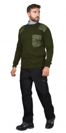 Джемпер форменный для сотрудников охранных предприятий с круглым вырезом и с усилительными накладками в области плеч и локтей, для защиты от протирания и более длительного использования джемпера. Джемпер с накладным карманом и погонами из курточной ткани. Длинные рукава обеспечивают полную защиту рук, а эластичная манжета на рукаве удерживает тепло.Джемпер предназначен для защиты от холода и рекомендован к использованию с костюмами зимнего ассортимента, в т.ч. с костюмами охранника и как самостоятельную модель.