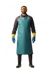 Прочный износоустойчивый фартук из уплотненного поливинилхлорида (ПВХ) предназначен для защиты от брызг кислот и щелочей концентрации до 80%, продуктов нефтепереработки, масел, жиров, лаков и красок на их основе при выполнении средних и тяжелых работ.