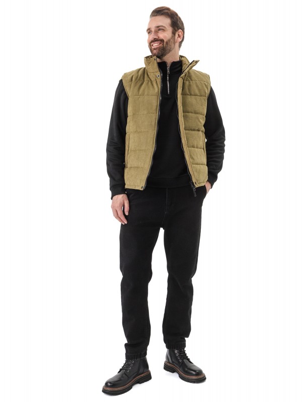 - Жилет мужской, прямого силуэта, утепленный, простеган декоративными строчками с двумя слоями утеплителя: