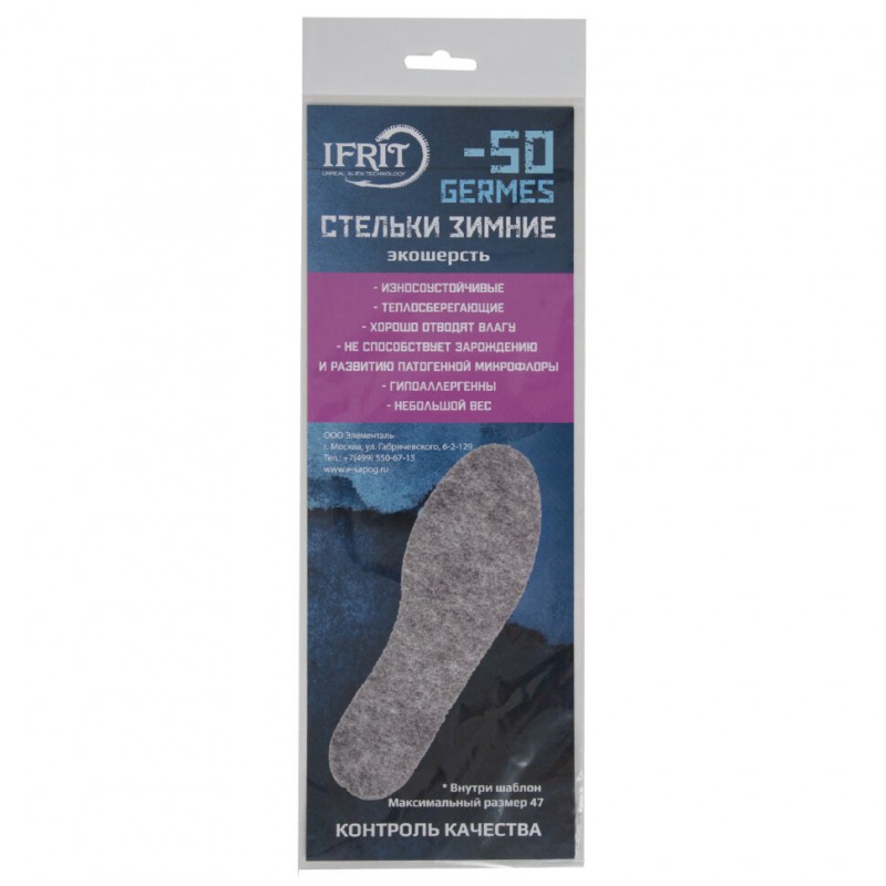 Универсальные теплосберегающие стельки Ifrit "Germes" -50°C - отличный выбор для тех, кто ищет качественные, прочные и эффективные стельки для зимней обуви. Стельки предназначены для обеспечения тепла, и комфорта, а также они легкие, гипоаллергенные и хорошо отводят влагу. Стельки из экошерсти Ifrit "Germes" -50°C, обладают износостойкостью, незаменимы для тех, кто ищет надежные и практичные решения для зимней обуви.