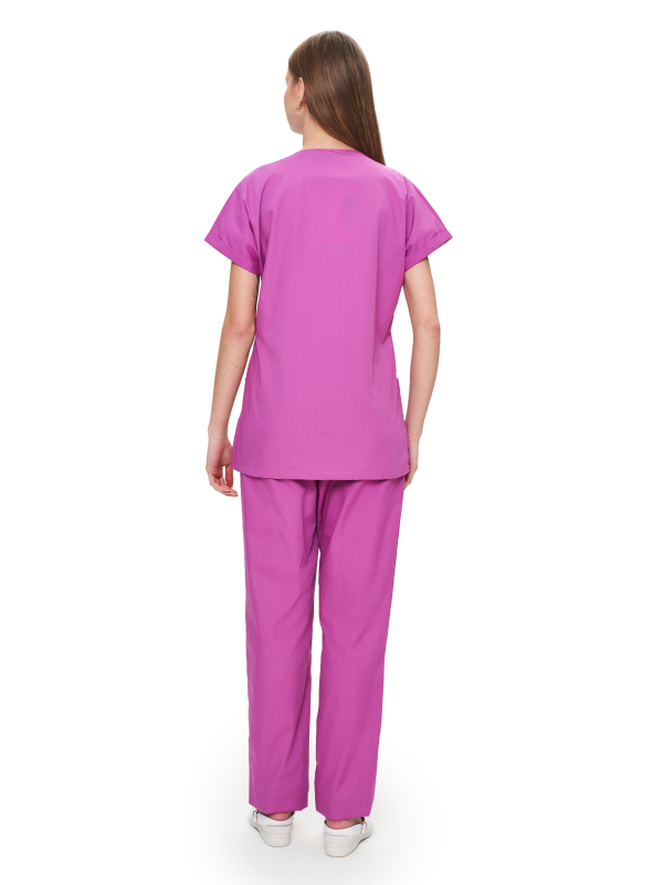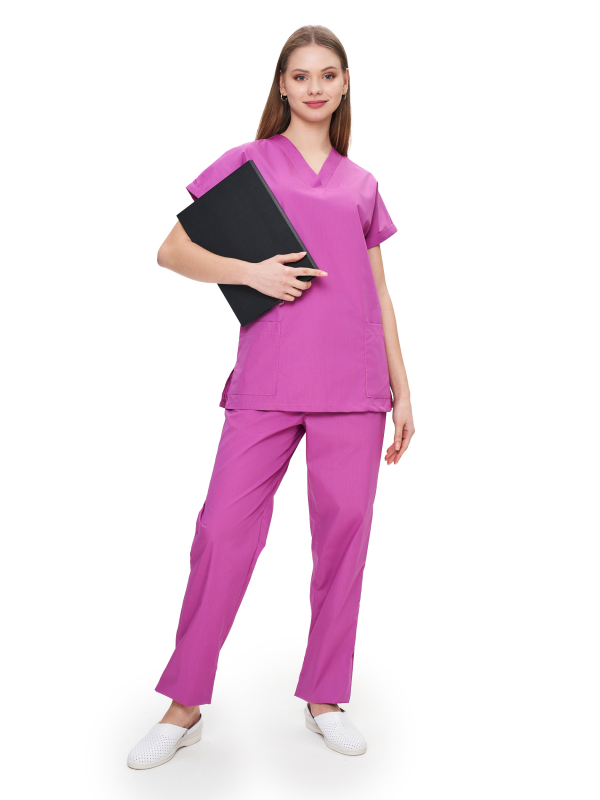 Современный, легкий и удобный женский костюм со свободной посадкой в спортивном стиле, рекомендован для сферы косметологии и работников медицинских учреждений из высококачественной смесовой ткани прекрасно переносят многократные стирки и выглядят презентабельно даже при длительных сроках эксплуатации. Широкий размерный ряд продукции позволит без труда подобрать костюм правильно по фигуре, в соответствии со спецификой профессии и с учетом индивидуальных требований сотрудника. Костюм женский «Эрла» для косметологов и медработников прост в уходе, не мнется и быстро сохнет, а материал долгое время сохранит свой первоначальный яркий цвет. Костюм состоит из куртки и брюк-джоггеров на резинке приятного сиреневого цвета. Сегодня современная мода вмешивается не только в подиумные и уличные образы. Она диктует свои правила разным сферам жизни, в том числе в сфере косметологии и медицине. Костюм состоит из прочной смесовой ткани ТИСИ, отталкивающей различного рода загрязнения. Материал устойчив к пятнам и истиранию, тем самым косметологи и медработники всегда будут выглядеть опрятно и привлекательно.