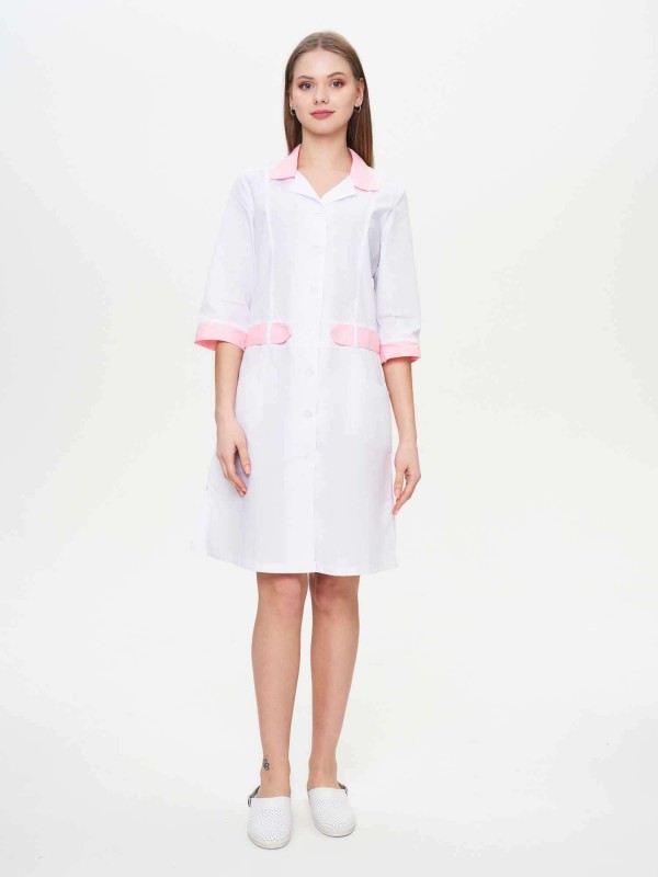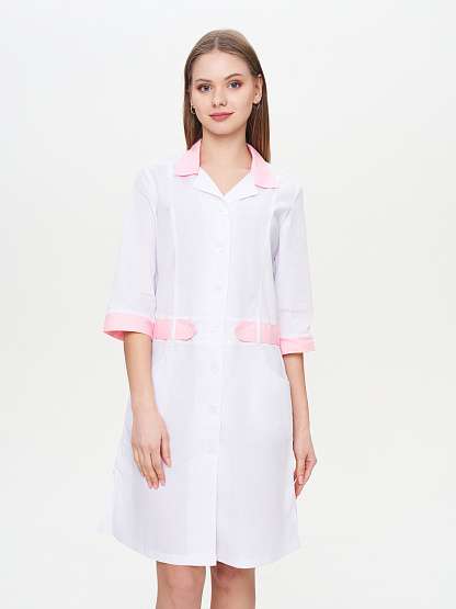 AMADEUS » СПЕЦОДЕЖДА и ОБУВЬ, КАМУФЛЯЖ » Спецодежда для торговли, сферы услуг, медицины- 02.26 » Халаты для медицины(ХМ)-17.02.26 » Халат женский "Фарма" белый с розовым(У). ХМ 9
