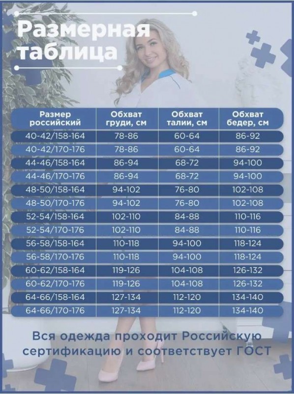 - Пол: медицинская одежда для женщин.