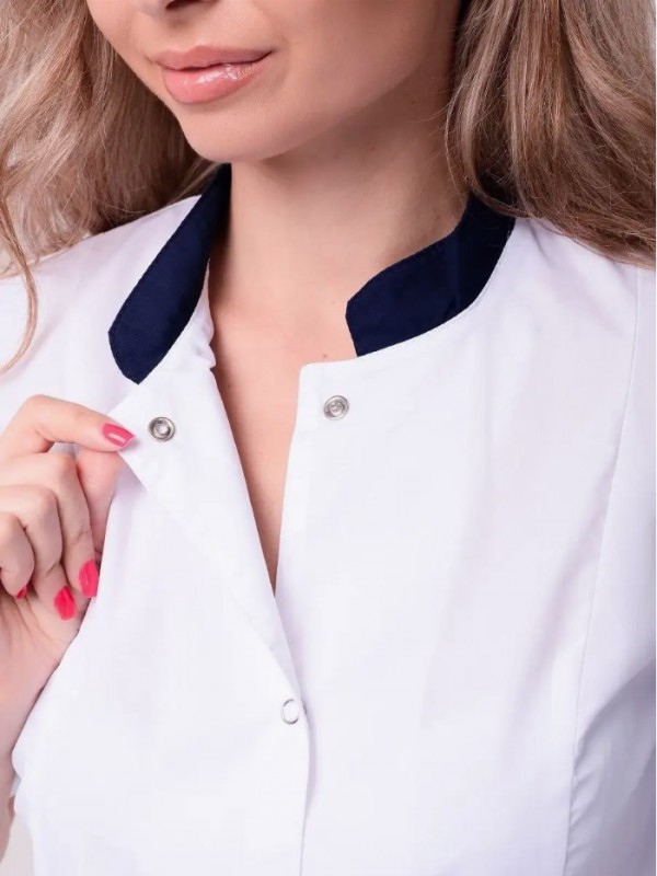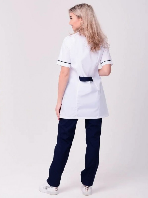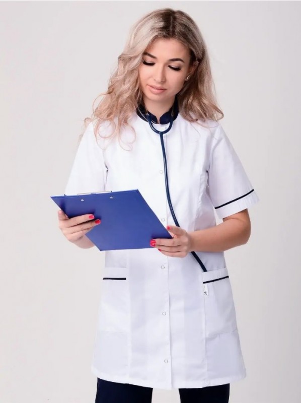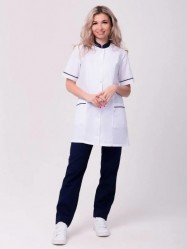 Стильный и выдержанный медицинский костюм женский для дам с тонким вкусом. Удобство, легкость и свобода в нем гарантированы. В основе - хлопок 35%, полиэфир 65%, плотность ткани 120 гр/м2. Ткань водоотталкивающая и воздухопроницаемая. Одежда для медработника высокого качества, прослужит надолго. В комплект униформы входят блуза и брюки. Блуза с коротким рукавом и воротником-стоечка. Застегивается на кнопки. Имеет боковые, накладные карманы. Штаны медицинские длинные, прямые. Спецодежда создаст достойный, рабочий образ. Гармоничное цветовое сочетание будет приятным для глаз окружающих. Одежда полуприлегающего покроя, свободно сидит, не сковывает движения, не причиняет дискомфорта. Представлена широкая размерная сетка: 40-62, в том числе большие размеры. Подойдет для медработниц с разным типом фигуры. Спецодежда медикам представлена в расцветке: сочетание белого цвета с темно-синим. Проявите повышенное внимание и любовь к медицинскому работнику и работнику смежных отраслей, подарив высококачественную и комфортную медицинскую одежду интересного и уникального дизайна. Качественная и удобная медицинская одежда порадует каждого работника медицинской сферы, как оригинальный подарок на весенний праздник, день рождения или просто так. Такой подарок будет ежедневно напоминать о вашей любви и заботе.