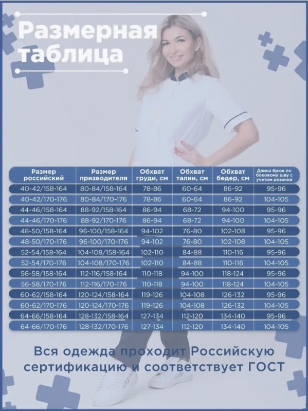 - Размерный ряд: с 40-42/158-164 по 60-62/170-176.