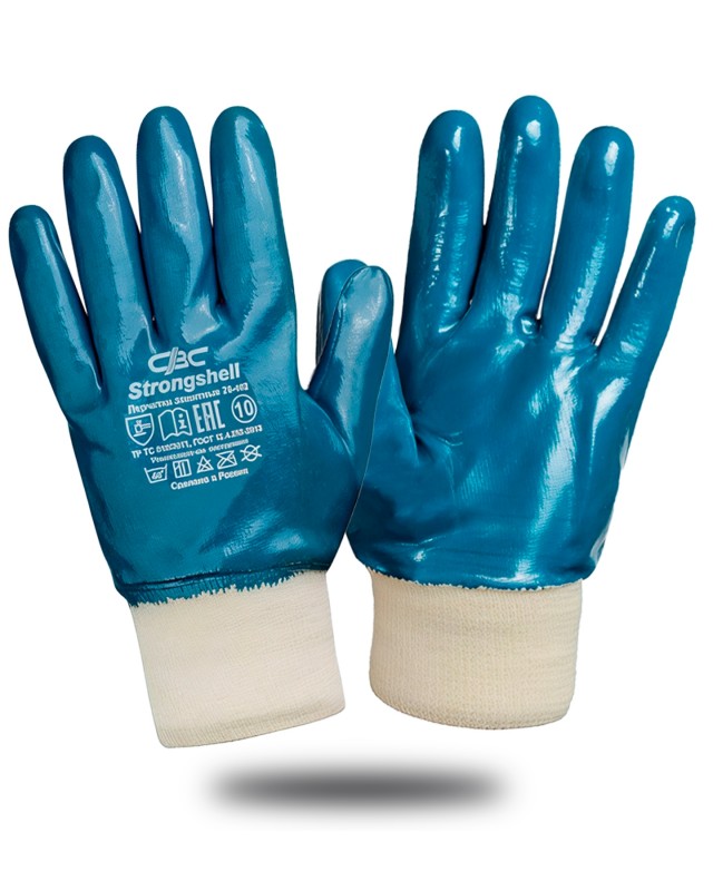 Перчатки Стронгшелл (Strongshell) х/б с полным нитрильным покрытием манжет р.10 (х5х144) Арт. 160585 ПЕР 15