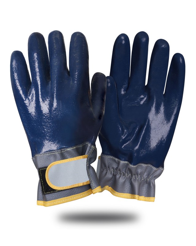 Износостойкие трикотажные перчатки с покрытием на основе бутадиен-нитрильного латекса с антиэлектростатическими свойствами, специально разработанным антивибрационным пакетом для защиты от вибрации и контакта с охлажденными поверхностями. Основа перчаток, изготовленная из высококачественного трикотажного полотна, обладающего механической прочностью и мягкостью, создает комфортный микроклимат для рук пользователя. Покрытие из бутадиен-нитрильного латекса защищает руки пользователя от механических воздействий (истирание, порез, прокол), а также от влаги и общих производственных загрязнений. Внутри перчатки, на ладонной части, размещен вибропоглощающий вкладыш. Перфорированная конструкция вкладыша обеспечивает гарантированную защиту рук пользователя от локальной вибрации в широком диапазоне частот. Для повышения безопасности пользователя в темное время суток, на тыльной стороне перчаток предусмотрены светоотражающие элементы. Защитная манжета на текстильной застежке Велькро, окаймлена кантом подходящего цвета, соответствующим размеру перчатки.