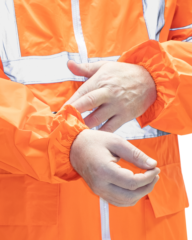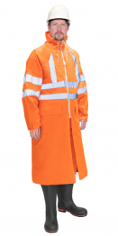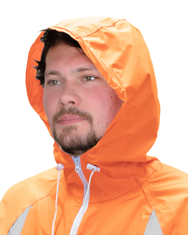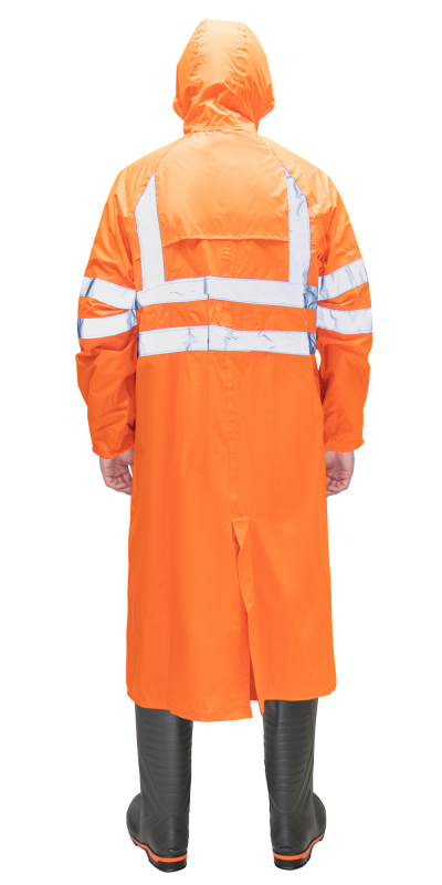 Практичный, функциональный плащ для работы и отдыха в непогоду с акцентом на безопасность.