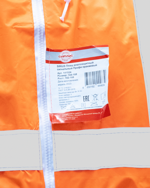 AMADEUS » ОБЩИЙ КАТАЛОГ НА ТОВАРЫ. СПЕЦОДЕЖДА, ОБУВЬ, КАМУФЛЯЖ, ФЛИСОВАЯ ОДЕЖДА » Защитная спецодежда-03.25(1) » +Влагозащитная одежда(ВЛ)-15.03.25(1) » Плащ влагозащитный сигнальный с СОП SIRIUS Профи (225 гр/м2) оранжевый (ЧЗ) (Арт. 141518) ВЛ 20/1