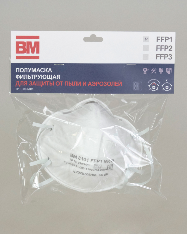 Респираторы противоаэрозольные ВМ 8101 FFP1 (без клапана выдоха), предназначенные для защиты органов дыхания от вредных трудноиспаряемых аэрозолей, таких как пыль, дым и туман. Они подходят для использования в различных отраслях, где требуется защита от мелкодисперсных частиц, например, в строительстве, сельском хозяйстве, производстве и других сферах.