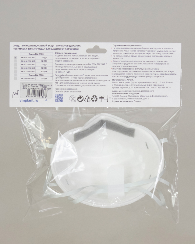 - Сертификация: ГОСТ 12.4.294-2015, EN 149:2001+A1:2009, ТР ТС 019/2011.