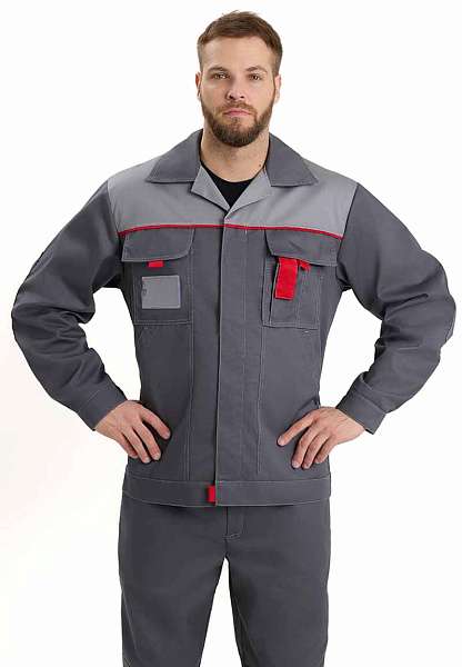 AMADEUS » СПЕЦОДЕЖДА и ОБУВЬ, КАМУФЛЯЖ » Спецодежда для лета-03.26 » Костюмы кур+бр, тк. хл/пэ(КБ) -02.03.26 » Костюм мужской "КИРЖАЧ" серый с красным Л10-КБР (куртка + брюки) Минпромторг Артикул: КОС-Л10М-КПК-серый(У). КБ 13/4