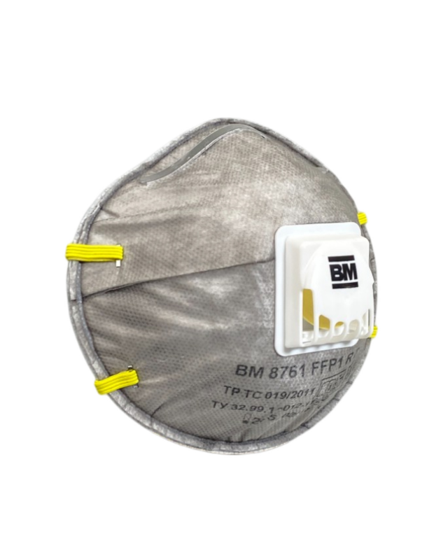 Респираторы противоаэрозольные ВМ 8761 FFP1 (с клапаном выдоха) для многоразового использования. Защищают от пыли, дыма и тумана в условиях низкой загрязнённости воздуха.