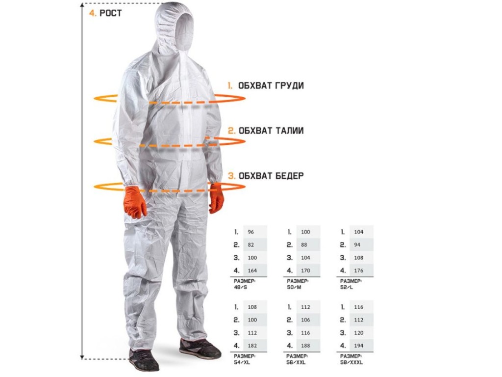 Легкий защитный комбинезон оснащен капюшоном, имеет комфортную посадку по фигуре, не сковывает движения во время рабочего процесса. Надевать комбинезон можно даже поверх обычной одежды, при этом пользователю гарантируется полная безопасность его гардероба. Гипоаллергенный нетканый материал (спанбонд) изделия очень легок и при этом довольно прочен. Спанбонд хорошо пропускает воздух, позволяя коже дышать, и не вызывает дискомфорта во время ношения. Он устойчив к высокой влажности, не поддается стиранию, выдерживает серьезные перепады температур и не накапливает статического электричества.