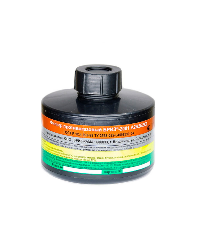 AMADEUS » Средства индивидуальной защиты » Защита органов дыхания 03.26 » Маски,полумаски, Противогазы, фильтры,предфильтры (МАС) 13.03.26 » Фильтр противогазовый Бриз-2001 марки А2В2Е2К2 Арт. 72445 МАС 63