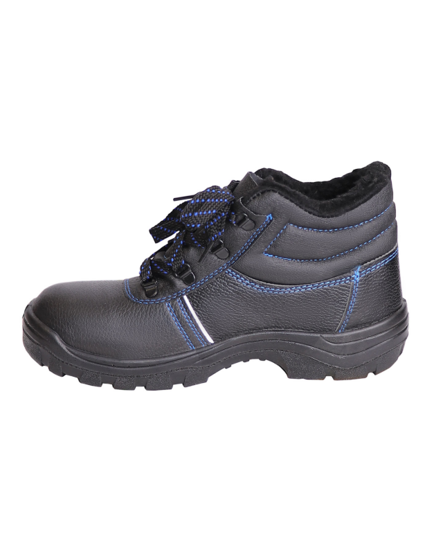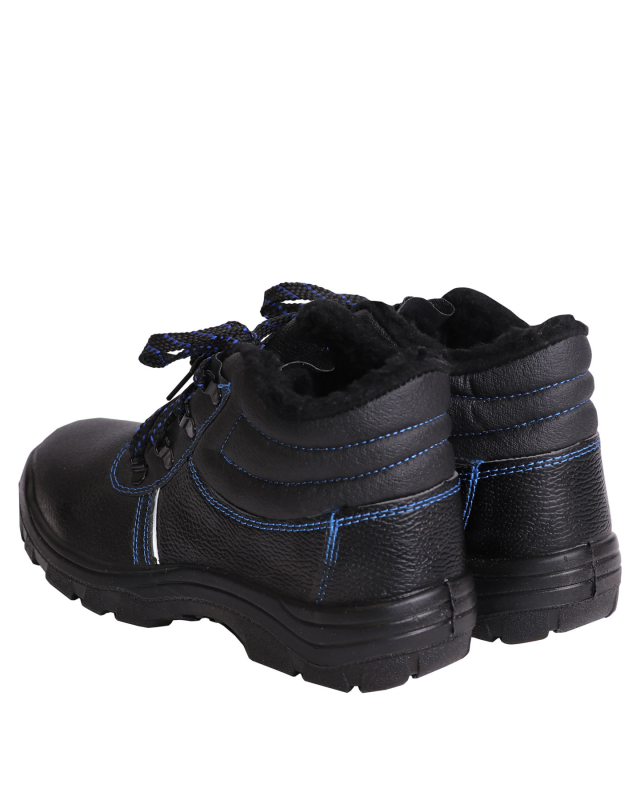 Ботинки из кожи c мягким кантом и глухим клапаном для защиты ног от общих производственных загрязнений в зимний период. Подкладка и вкладная стелька изготовлены из искусственного меха. Шнуровка, проходящая через металлические петли, обеспечивает комфортную адаптивную посадку. Светоотражающие элементы повышают видимость работников в темное время суток и на неосвещенной территории. Однослойная маслобензостойкая полиуретановая подошва литьевого метода крепления имеет вставку в пяточной части подошвы, обладающую амортизационными свойствами и способную гасить ударные нагрузки при ходьбе. Глубина протектора ходового слоя обеспечивает хорошую сцепляемость с поверхностями и препятствует скольжению за счет рельефа протектора.