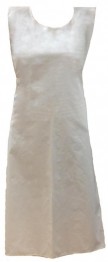 Фартук ПВХ с цельнокроеным нагрудником, переходящим сзади в кокетку, к нижней части которой притачана эластичная лента. К боковым углам на уровне талии притачана тесьма, концы которой продеваются через петлю в эластичной ленте и завязываются спереди.