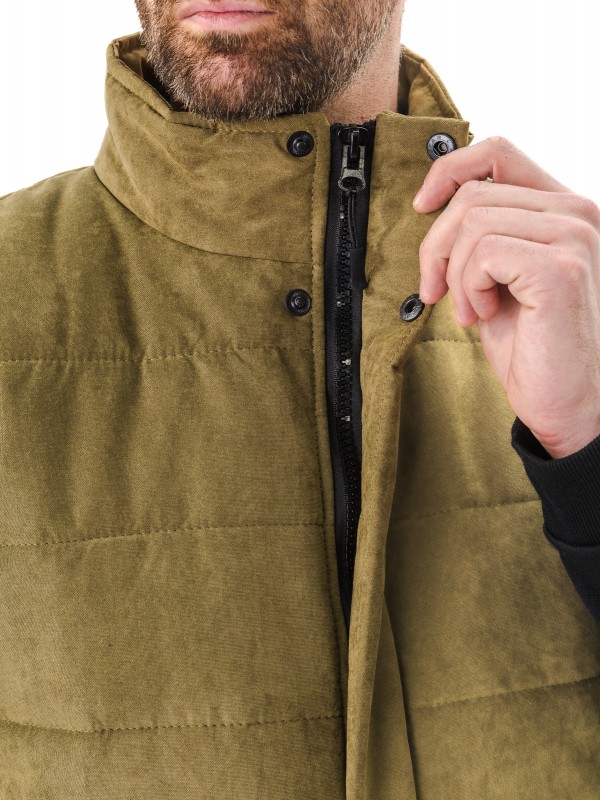 - Жилет мужской, прямого силуэта, утепленный, простеган декоративными строчками с двумя слоями утеплителя:
