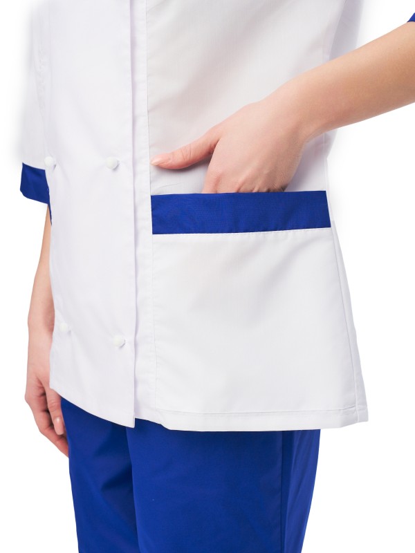 AMADEUS » СПЕЦОДЕЖДА и ОБУВЬ, КАМУФЛЯЖ » Спецодежда для торговли, сферы услуг, медицины- 25.12.24 » Костюмы для сферы услуг и медицины(КОС) -19.02.26 » Костюм повара женский "Фламбе" белый с васильковым Артикул: ПОВ567-030(У) КОС 17