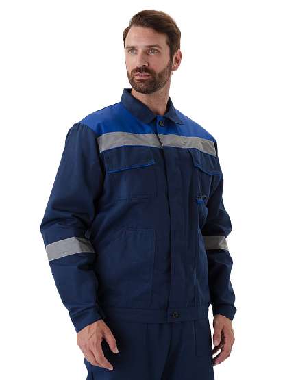 - рукав на притачной манжете с застежкой на пуговицу, выделены световозвращающей лентой СОП, в области локтя-усилительные накладки