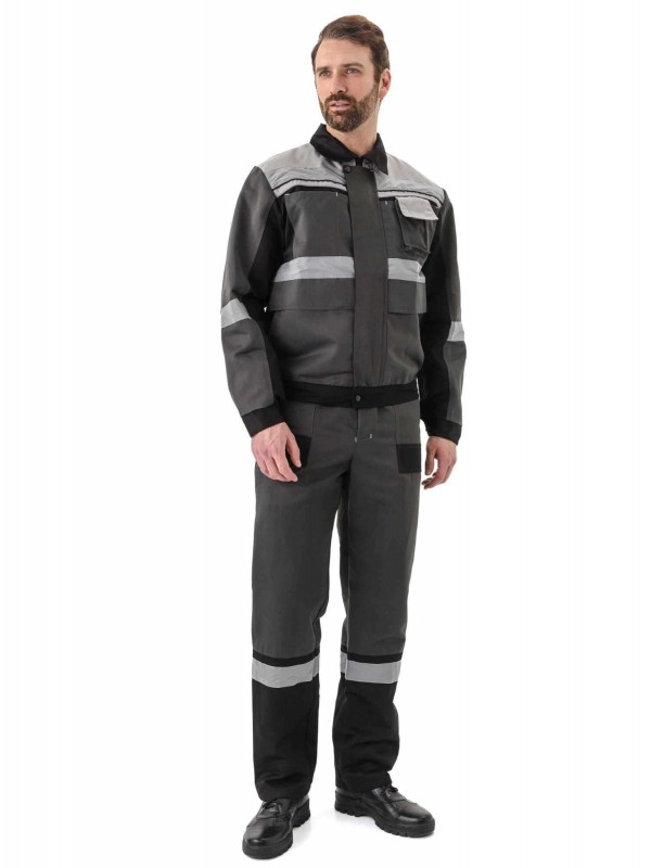 Костюм трехцветный, состоит из куртки и полукомбинезона. Куртка укороченная с притачным поясом на резинке с супатной застежкой на молнию. По кокеткам, полочкам, спинке, рукавам и брючинам расположены световозвращающие полосы, что позволяет использовать костюм в условиях плохой видимости. На куртке множество функциональных карманов, в том числе карман для средств связи с клапаном на липучке.