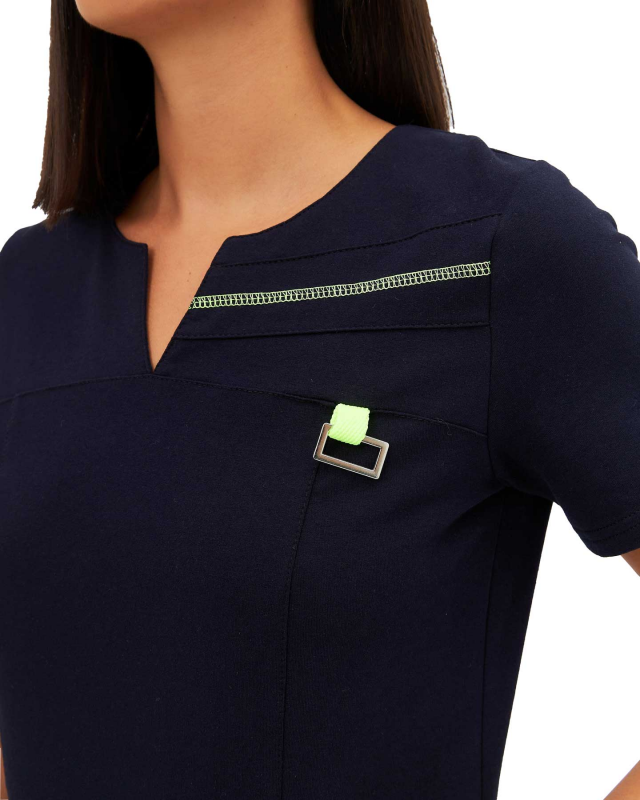Костюм состоит из блузы и брюк, предназначен для медицинских работников, а также для спорта и отдыха. В костюме предусмотрены декоративные элементы.