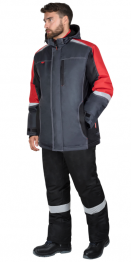 Куртка СИРИУС-ФАВОРИТ-МЕГА-М зимняя, тёмно-серая с черным, красным и СОП Арт. 112779 КУР 50/1