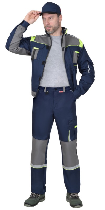 Костюм СИРИУС-СТАН куртка, брюки, синий со средне-серым и лимонной отделкой Арт. 162822. КБ 73/1