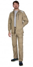 Костюм СИРИУС-ДЕКСТЕР куртка, брюки, песочный с черной отделкой, тк. стрейч с ВО Арт. 166551
