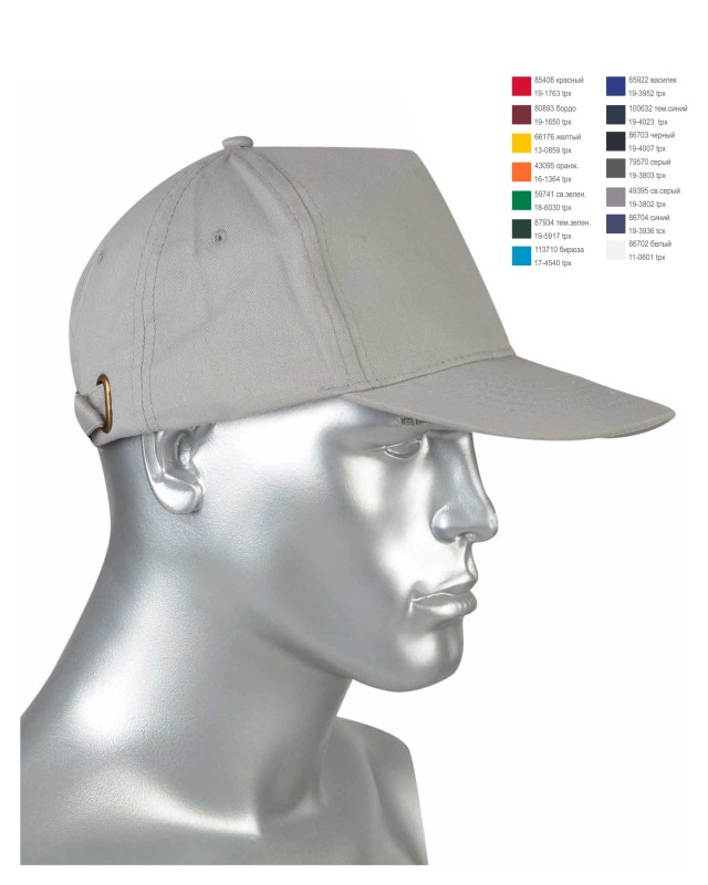 Кепи-бейсболка выполнена из текстильной ткани диагонального переплетения плотностью 200-210 гр/м2, 100% хлопок.