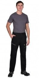 AMADEUS » Летняя спецодежда- 03.25(1) » . Комбинезоны, полукомбинезоны,брюки. куртки- 04.26 » .Для работ с "болгаркой" ( хлопок 80-100%)- 03.04.26 » Брюки СИРИУС-ДЕКСТЕР черные с лимонной отделкой, тк. стрейч с ВО Арт. 161606 КХ 1