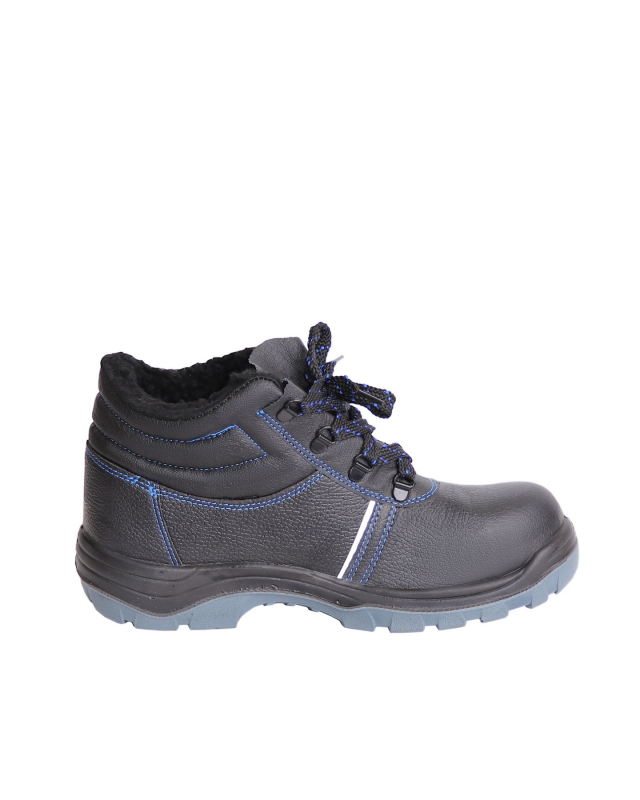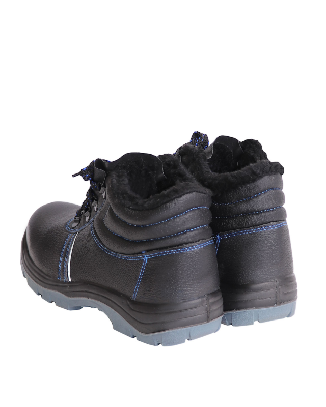 Ботинки из кожи c мягким кантом и глухим клапаном для защиты ног от общих производственных загрязнений в зимний период. Подкладка и вкладаня стелька изготовлены из искусственного меха. Шнуровка обеспечивает комфортную адаптивную посадку. Светоотражающие элементы повышают видимость работников в темное время суток, а также на неосвещенной территории. Двухслойная маслобензостойкая полиуретановая подошва литьевого метода крепления имеет вставку в пяточной части подошвы, обладающую амортизационными свойствами и способную гасить ударные нагрузки при ходьбе. Глубина протектора ходового слоя обеспечивает хорошую сцепляемость с поверхностями и препятствует скольжению за счет рельефа протектора.